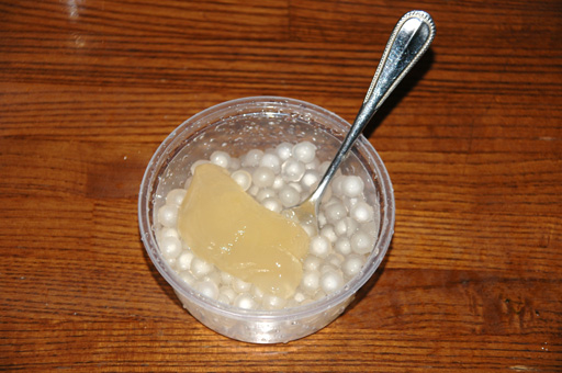 適当な器にタピオカを入れ甘味をのせていただきます。